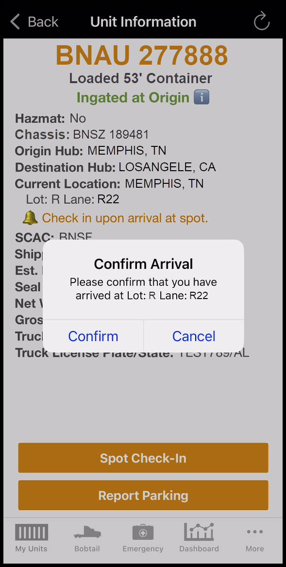 Truck Spot Check-In enables drivers to confirm arrival at their assigned truck or transfer spot after submitting a lift request in the wide span crane area. Checking in the through the RailPASS app automatically triggers a work order for the crane operator, reducing delays and improving yard efficiency through better driver-operator communication.